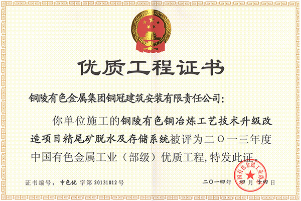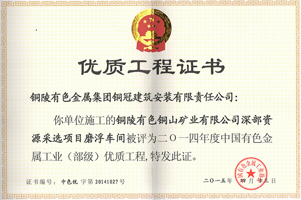 • 銅山磨浮—安裝優(yōu)質(zhì)工程獎